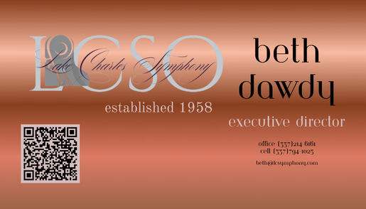 Beth has also forged meaningful partnerships with city arts programs, museums, and statewide initiatives such as Symphony in the Park. She believes these collaborations are essential to the vitality of the arts overall and has made it her mission to ensure that the Symphony continues to thrive in harmony with the many other arts programs that enrich Southwest Louisiana.